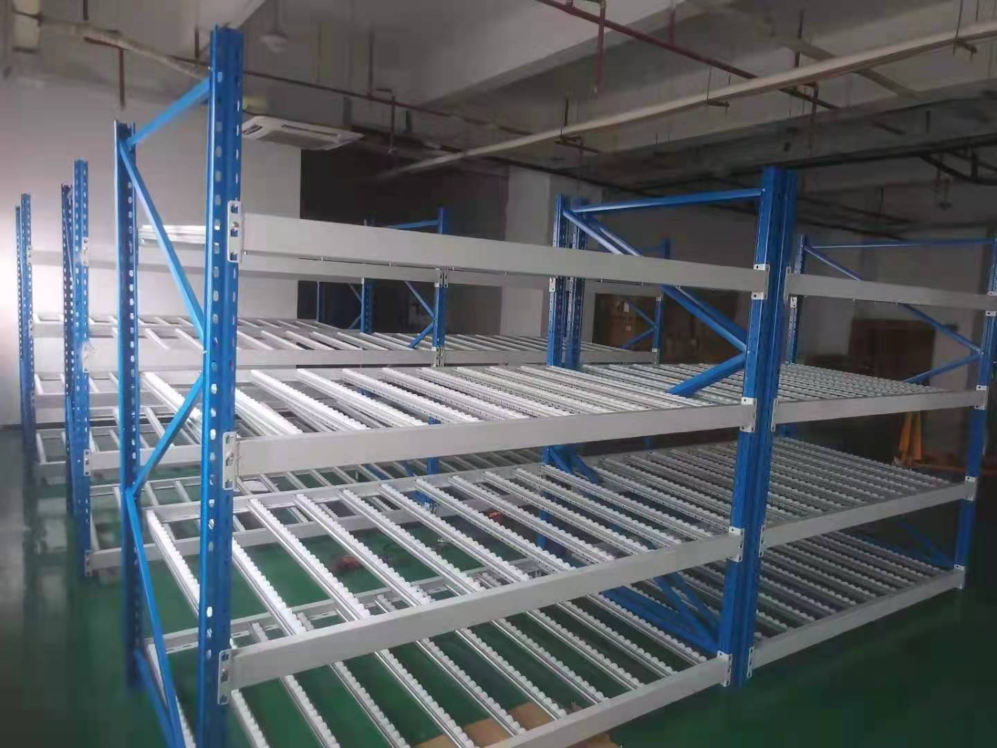 空間利用率極高,適于儲(chǔ)存少品種大排量同類型貨物,貨物可從同一側(cè)存入取出,也可從一側(cè)存入另一側(cè)取出。全插接組裝式結(jié)構(gòu),柱片為裝配式結(jié)構(gòu),靠墻區(qū)域的貨架總深度一般最好控制在5個(gè)托盤深度以內(nèi),中間區(qū)域可兩邊進(jìn)出的貨架總深度一般最好控制在10個(gè)托盤深度以內(nèi),以提高叉車存取的效率和可靠性。貫通式通道寬度看托盤和貨物,一般差不多在1.4米多點(diǎn)差不多就行,注意叉車選配時(shí)候車身尺寸和貨架向?qū)У拈g距,作業(yè)時(shí)候小心操作即可。