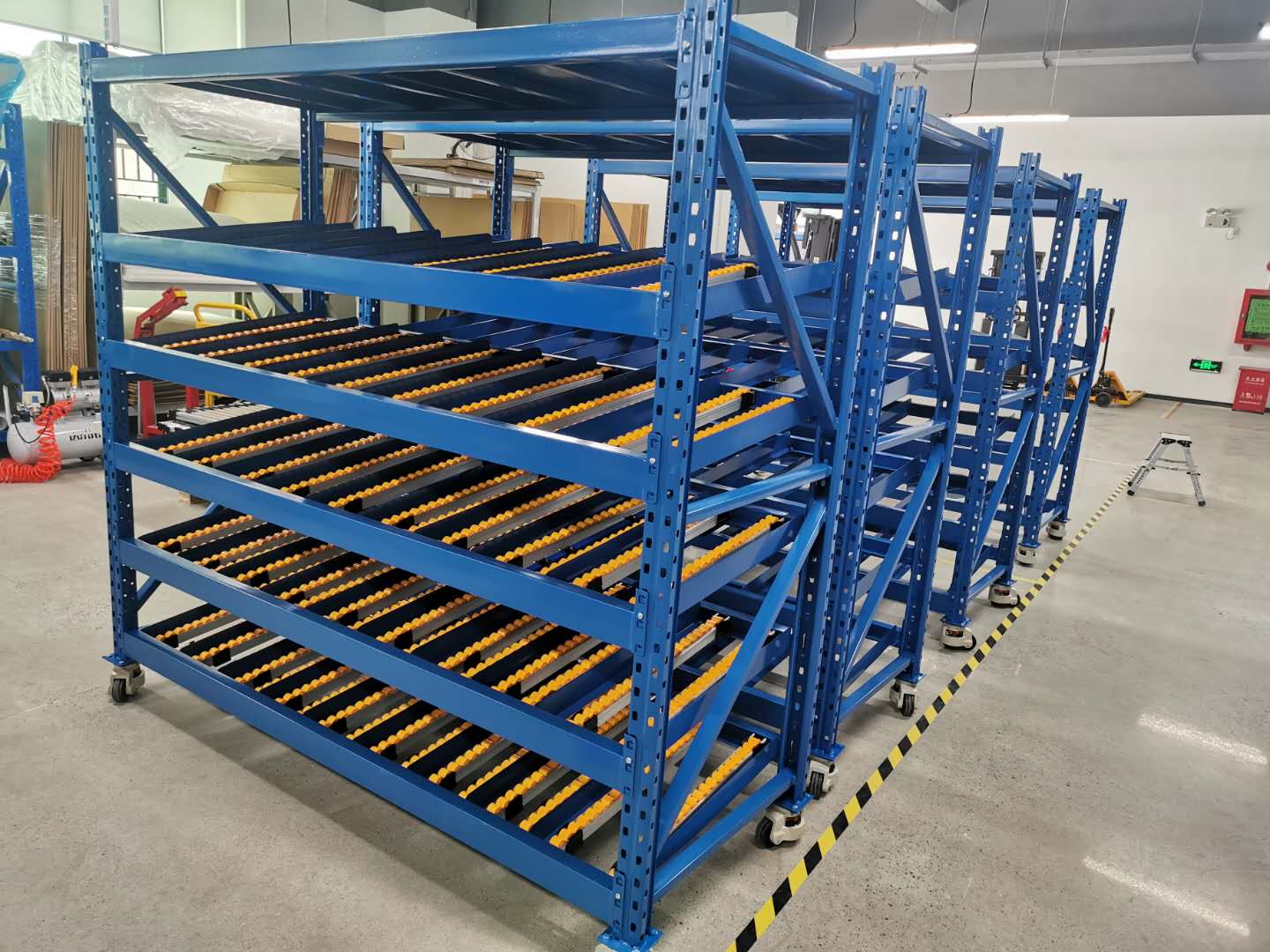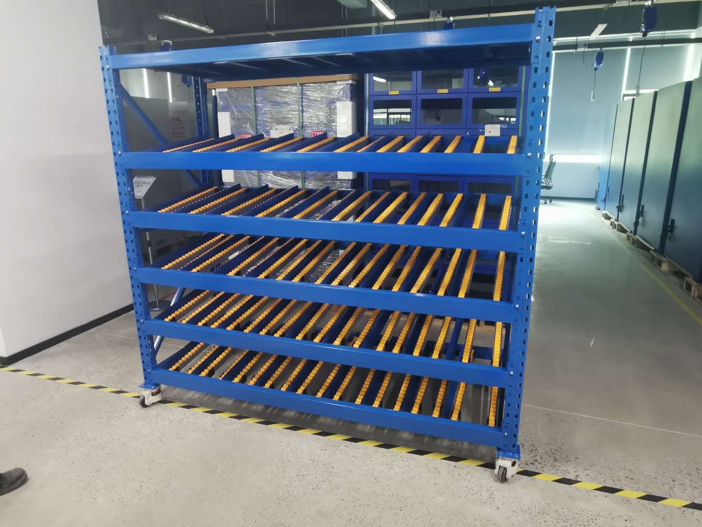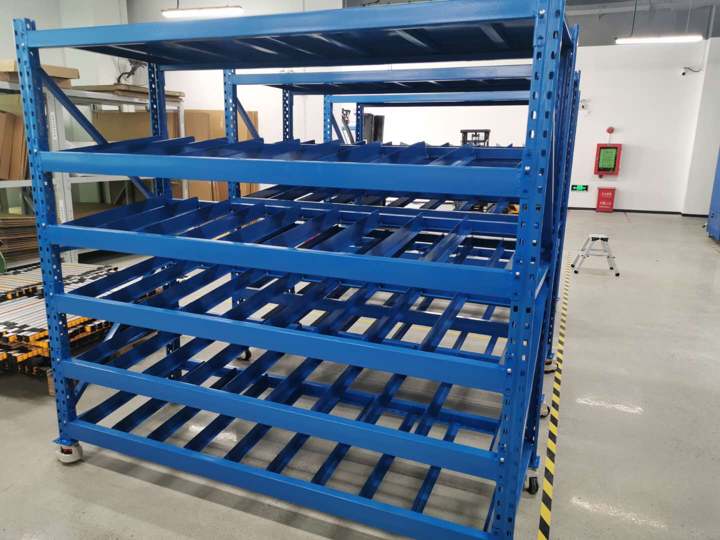 很多客戶不太明白流利貨架是有什么用處?是將貨物置于滾輪上,利用一邊通道存貨,另一邊通道取貨,料架朝出貨方向向下傾斜,貨物在中立作用下向下滑動,可實現(xiàn)先進先出,并可實現(xiàn)一次補貨,多次揀貨,流利架存儲效率高,適合大量貨物的短期存放和揀選,流利架廣泛應(yīng)用于配送中心,裝配車間及出貨頻率較高的倉庫,可以實現(xiàn)貨物先進先出,一次補貨,多次揀貨,可加腳輪便于線旁作業(yè).