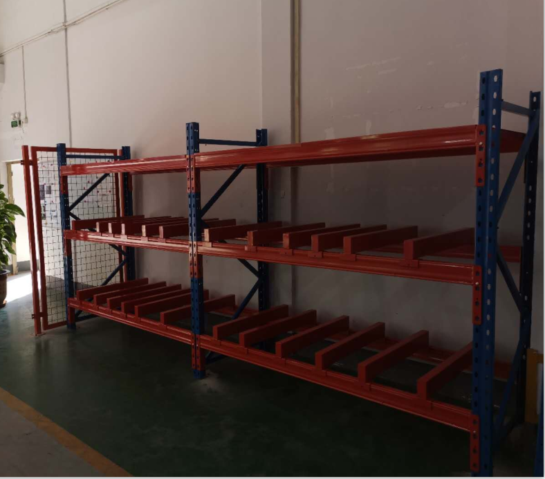 上圖是我司根據(jù)客戶要求來(lái)設(shè)計(jì)生產(chǎn),首先是根據(jù)客戶場(chǎng)地來(lái)設(shè)計(jì),目前客戶場(chǎng)地的是5.5米長(zhǎng),由于客戶的模具大小不一,還有的需要放到卡板上,由于模具較大又很重,所以只做2層,頂上一層鋪鋼板,這樣可以放一些小物件及雜物,太高的話不方便上下貨。由于長(zhǎng)度限制貨架就做1主2副,防止模具脫落,特意在兩側(cè)增加側(cè)網(wǎng),模具架由立柱加拉桿組成柱片,將導(dǎo)向槽安裝于柱片之上,上下用橫梁連接固定,接著將抽屜盤安裝于導(dǎo)向槽內(nèi),如廠房?jī)?nèi)無(wú)行吊,還可在貨架立柱之上架設(shè)天軌和天車,并可安裝手動(dòng)或電動(dòng)葫蘆,天軌采用不低于100×50抱焊橫梁。整體部件做好黑胚后經(jīng)拋丸除油、除銹,噴塑最后一道表面處理工藝,完成后便可包裝發(fā)貨。